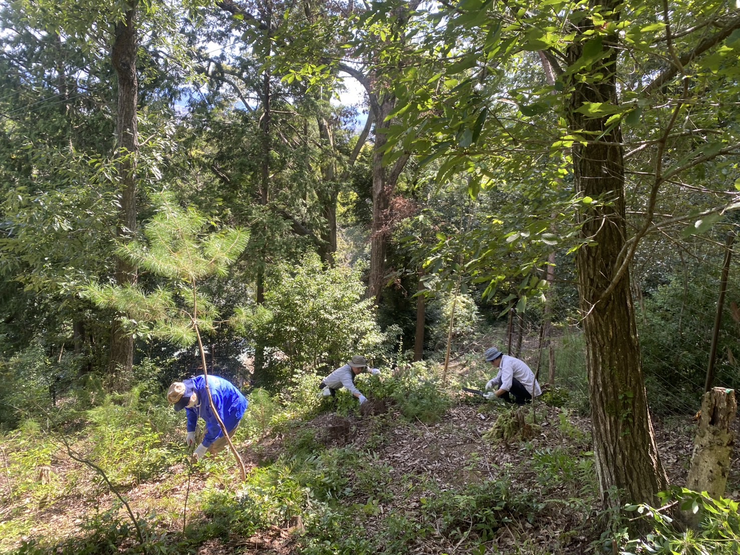 9月19日(金)は景勝・小倉山を守る会の定期活動日でした。守る会の会員さん約4名にご参加いただき、下草刈りや広葉樹の除伐などの作業を行いました。